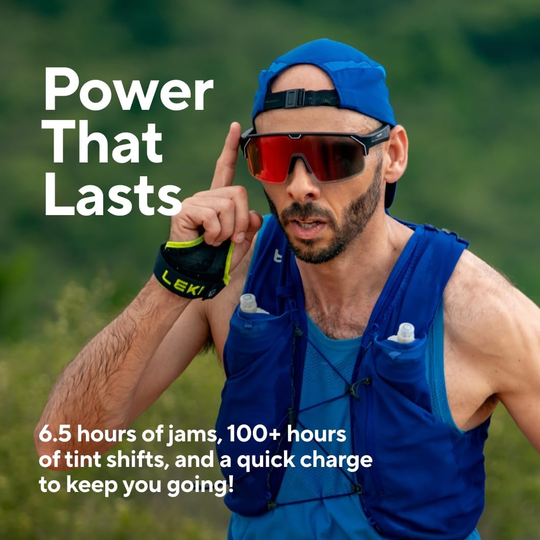 CHAMELO Music Shield Smart Audio Sunglasses – Matte Black Frame, Fire Lenses | Open-Ear Bluetooth Glasses for Men & Women with Electronic Tint Control, Sweat Proof, Sports Eyewear, 100% UV Protection