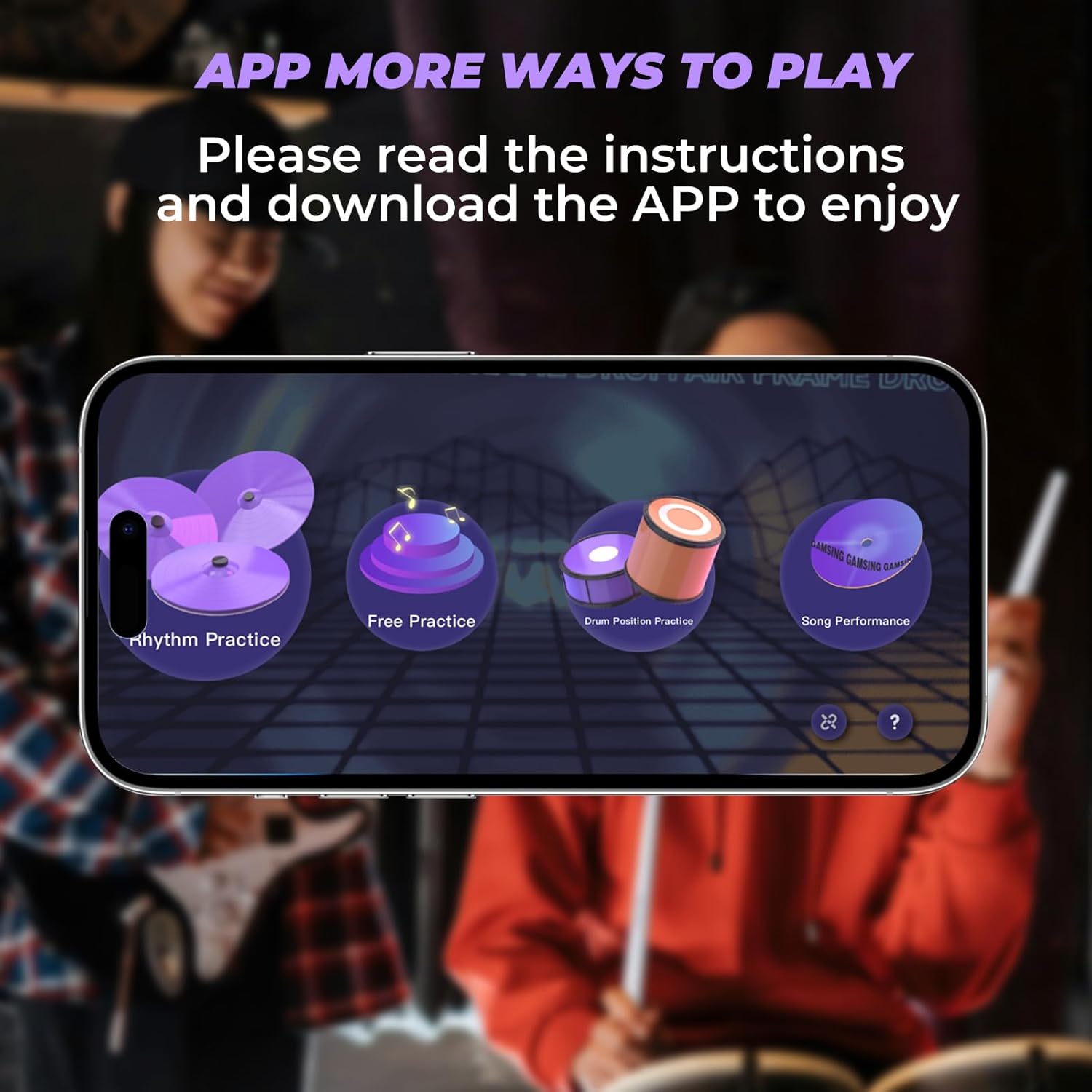 Air Drum Electronic Drum Set - Portable Electric Air Drum Set With 3.5mm Input, Air Drumsticks Pedals Lessons & Games, Bag, Pedal, Lanyard - Gamsing Official Genuine